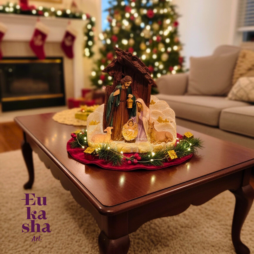En esta colección encontrarás piezas únicas pintadas a mano: árboles que iluminan los rincones con ternura, pesebres que cuentan la historia más sagrada, Sagradas Familias que inspiran paz y detalles decorativos que hacen brillar cada momento compartido.